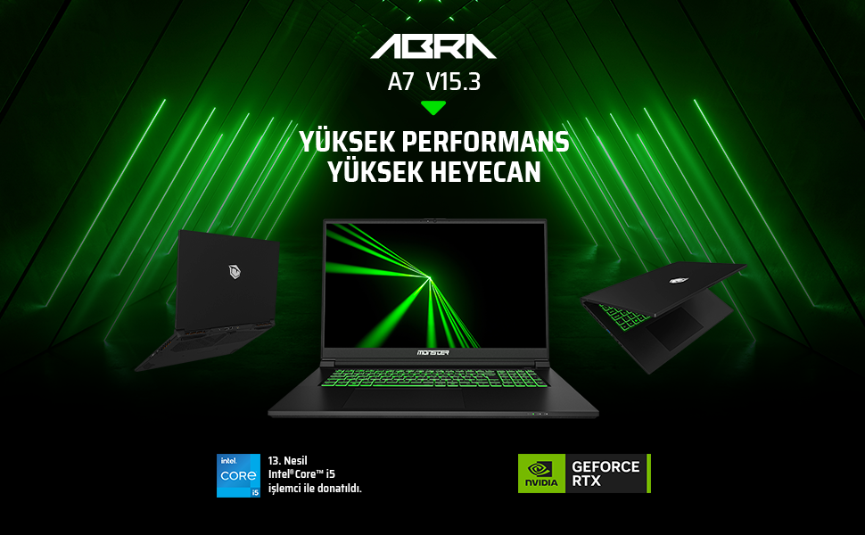 Monster Abra A7 V15.3.4 Intel Core i5 13500H 16 GB RAM 1 TB SSD 6 GB RTX 3050 FreeDOS 17,3" FHD 144 Hz Oyun Bilgisayarı